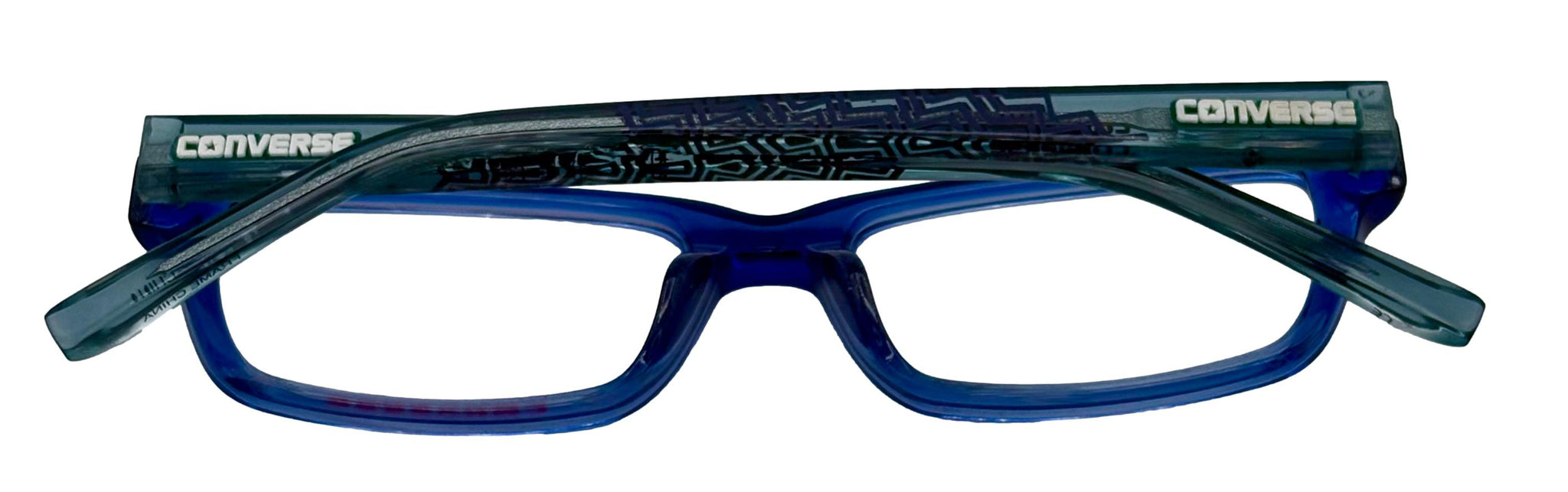 This is brand new Converse Eyeglass Frame. , It has plastic temples, Normal retail was about $275.00. Blue Plastic Temples. This product now come with Genuine Converse Case Solid Blue Front Size: 47 16 130, Height 28mm, Regular Retail: $275.00 You Pay: $39.99 Light Frame Lens is a soft rectangle full frame Converse All Stars feature hand-made zyl temple tips on most models. As with zyl products, heat must be applied to the zyl prior to adjusting to help prevent cracking You can take this to your doctor and have you prescription put in and save a ton on money You Pay Only $39.99 now